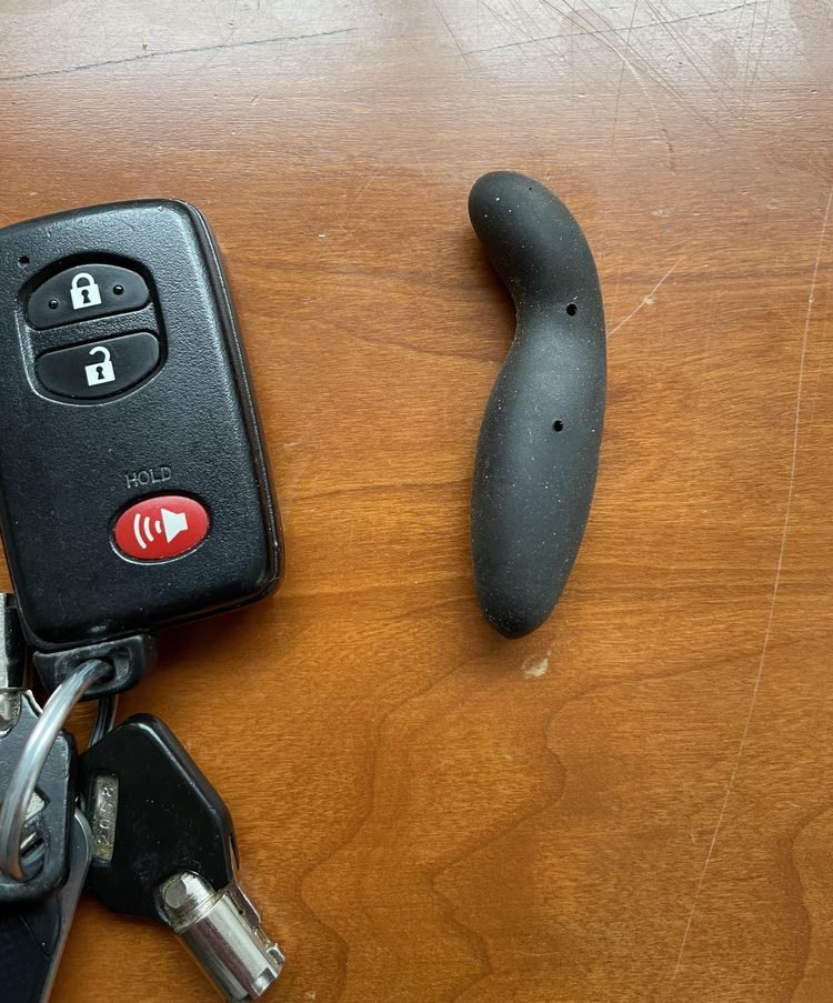 Вопрос: «Нашел этот твердый пластиковый предмет в кухонном ящике. Автомобильный брелок для масштаба»