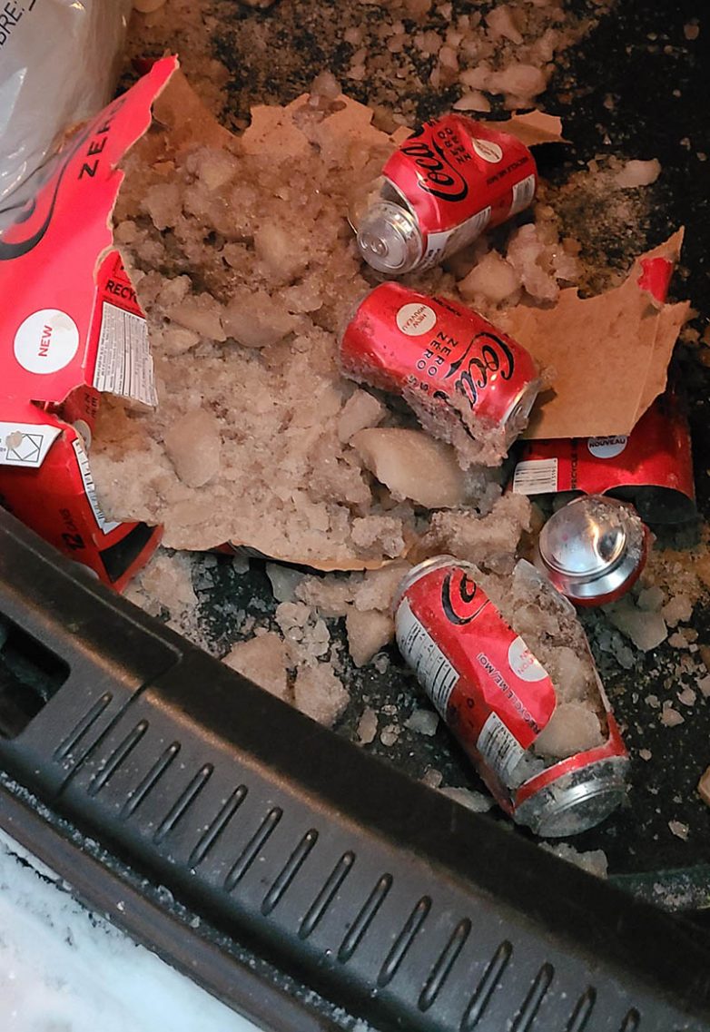 Вот что бывает, когда оставляешь ящик колы в багажнике, а на улице -32°C