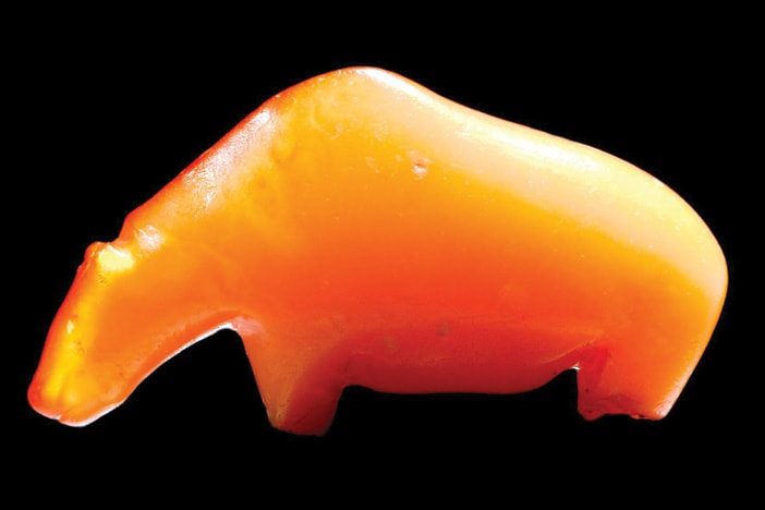 9. Красивая янтарная фигура медведя эпохи мезолита, созданная в период 12500-3900 годов до н.э.