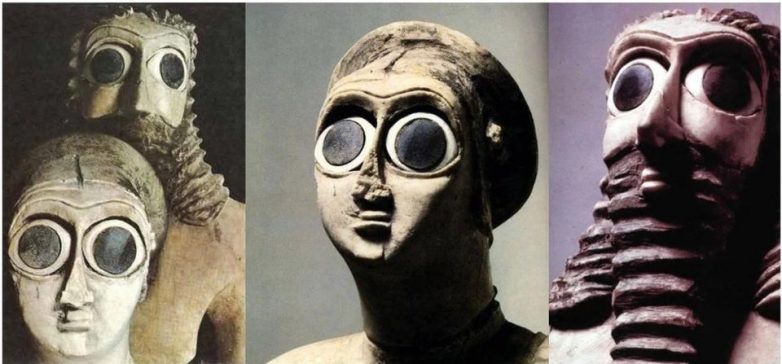 14. Глазастые шумерские статуэтки молящихся людей, 2900-2600 года до нашей эры