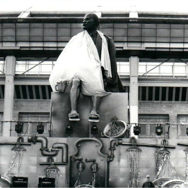 Ленин в банном. Инсталляция ко дню пива в Москве на стадионе «Лужники» в 1998 году.