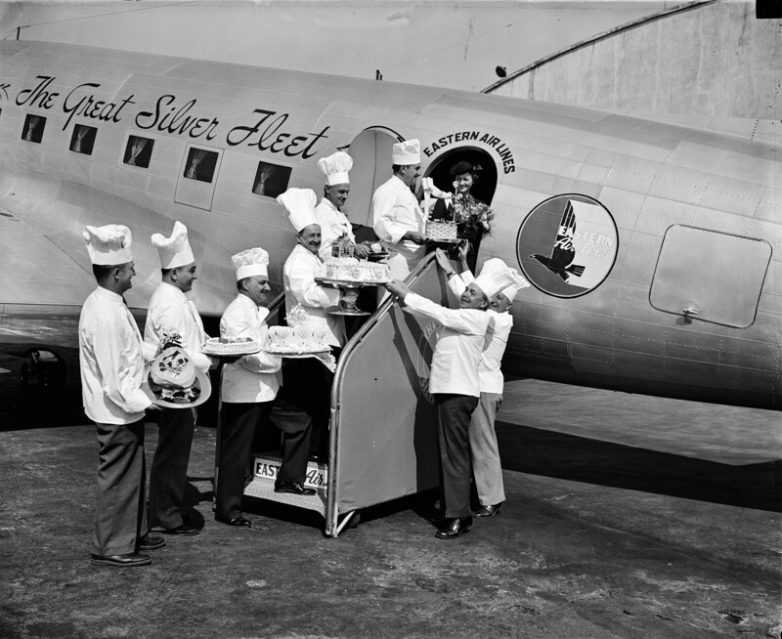 В полёте хочется сладкого. Загрузка тортов в пассажирский самолёт. США. 1938 год
