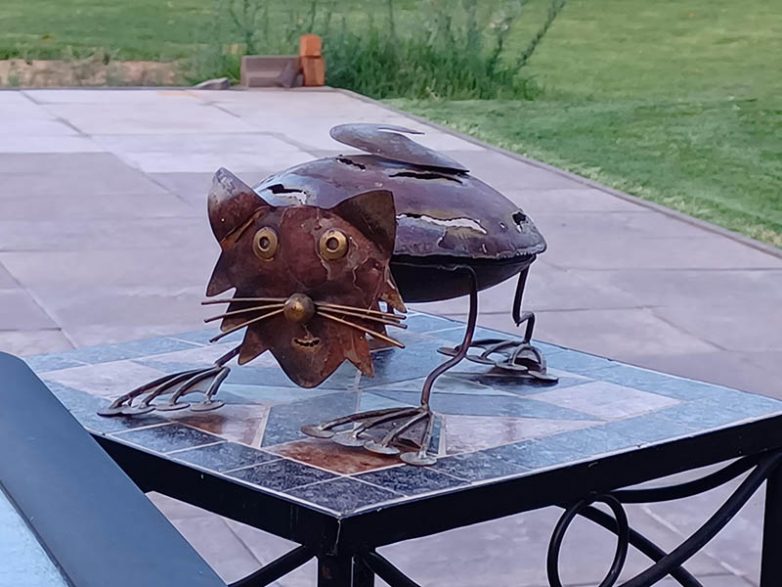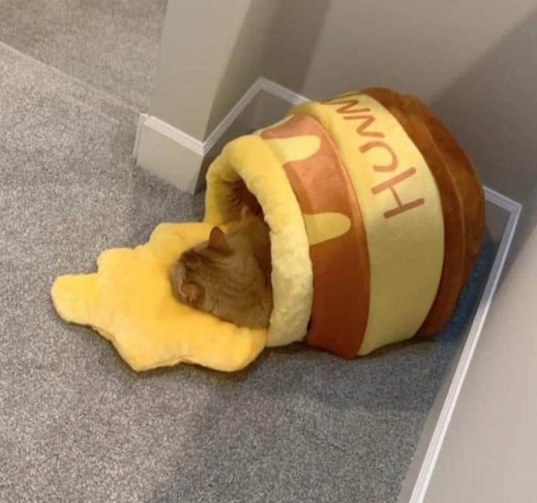 Котику пришелся по душе домик в виде перевернутого бочонка с медом