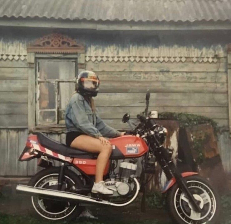 Девушка на мотоцикле «Jawa». Россия, 1990-е