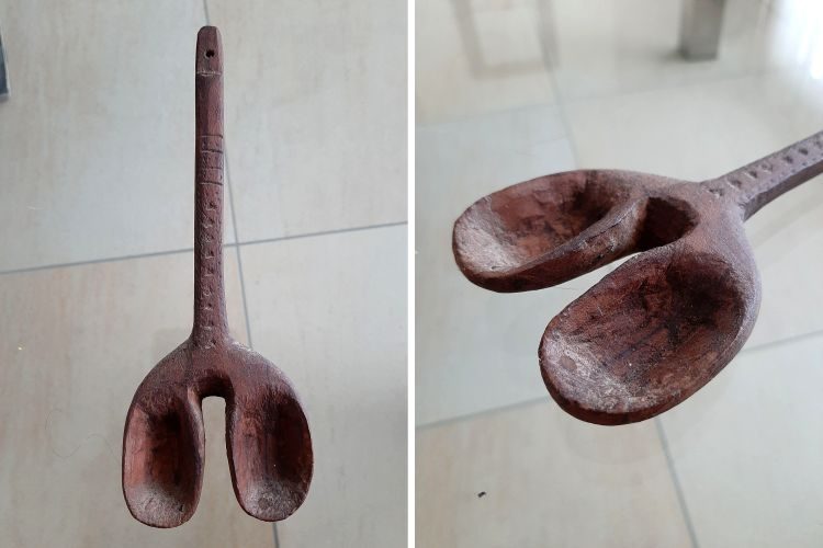 Ответ: «Это африканская двойная ложка Якуба — символ гостеприимства в традиционном африканском искусстве. Она представляет собой две очень разные вселенные, которые противоположны друг другу»