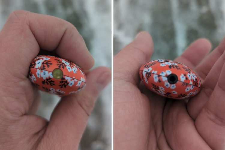 Вопрос: «Овальный объект, найденный в снегу. Он громко чирикал. С одной стороны есть светодиод и отверстие с другой. Звук исходил из круга на первом фото»