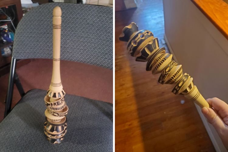 Вопрос: «Нашел это, когда убирался на чердаке. Сделано из дерева, выглядит как ручная работа, в длину около 20 см. Понятия не имею, что это такое и что оно делает!»