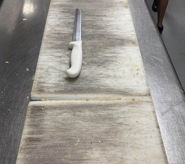 Оказывается, можно насквозь прорезать толстую доску, если резать хлеб в одном месте. Именно так и получилось у одного шеф-повара.