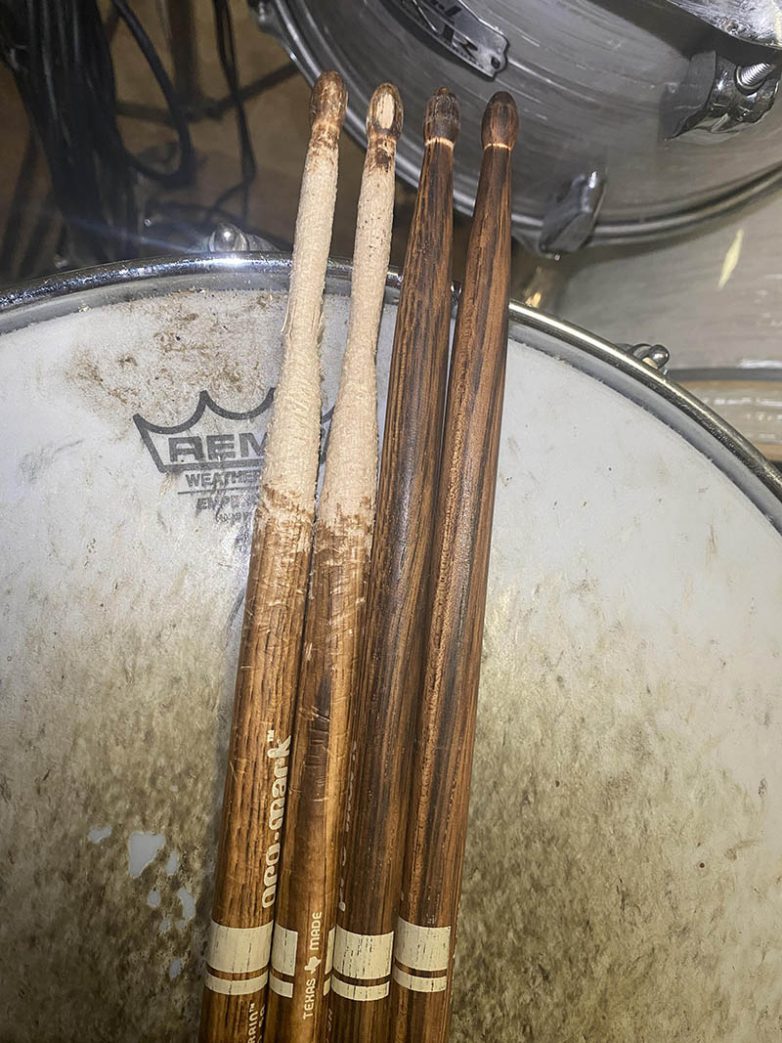 “После потной работы на студии я решил поменять свои палочки на новые”