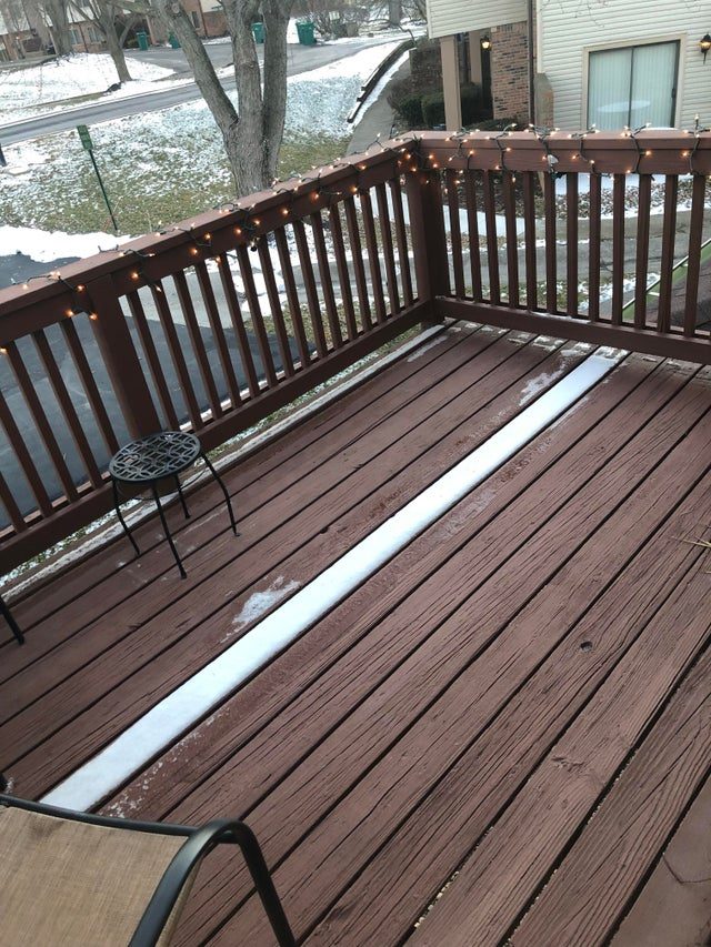 5. Необъяснимо но факт: снег на террасе не растаял только на одной доске