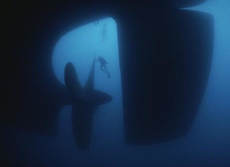 Купание у борта контейнеровоза