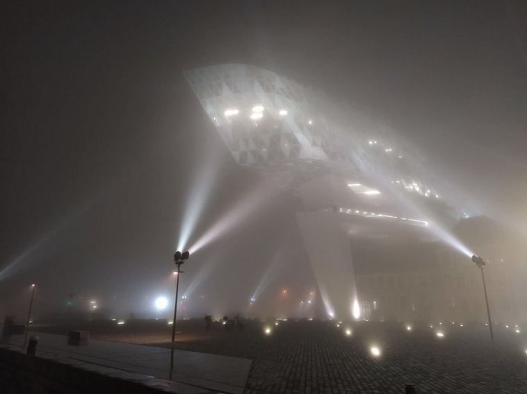7. Линии этого здания необычного здания в Китае ещё и подсвечиваются ночью