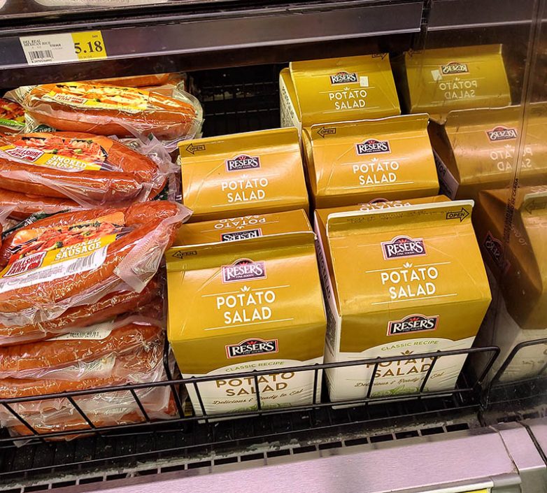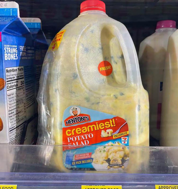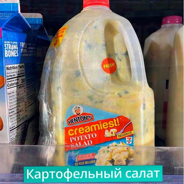 Самый обычный картофельный салат. Но в большой пластиковой бутылке.