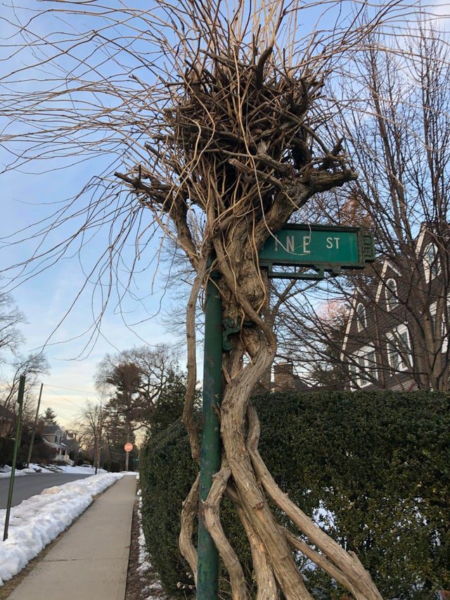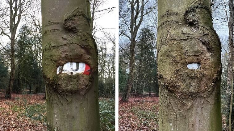 3. Мало того, что это дерево с легкостью поедает дорожные знаки, так у него еще и “лицо” есть