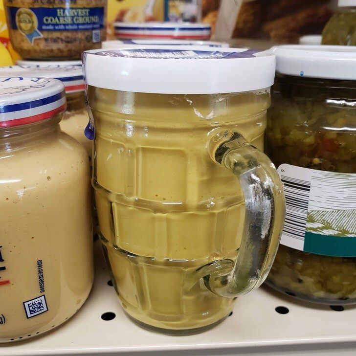 6. Стеклянная банка с горчицей, которую потом можно использовать как пивную кружку