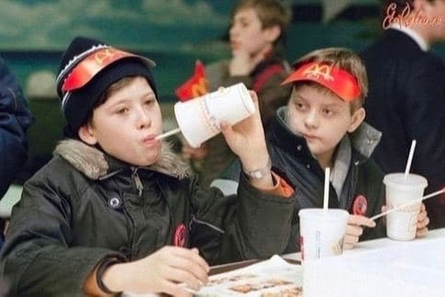 Ребята отдыхают в Макдональдсе. Москва, 1990 г.