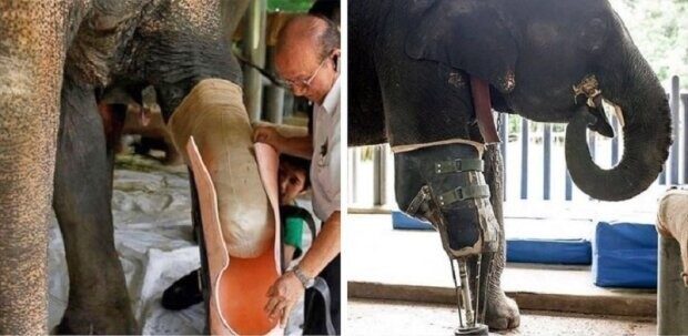 Протез, изготовленный для слона