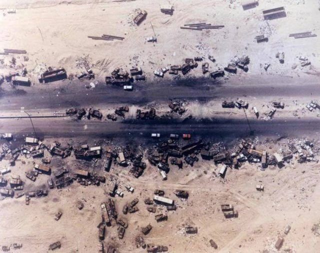 «Шоссе смерти». Результат американских бомбардировок во время отступления иракских сил, Ирак, 1991 год.