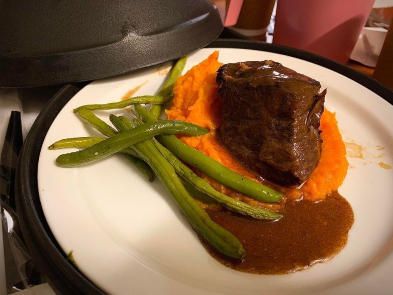 Тушёные рёбра с пюре из сладкого картофеля. Лонг-Айленд, Нью-Йорк. Нежное мясо и аппетитный внешний вид. Минимум 8,5 за больничный ужин.