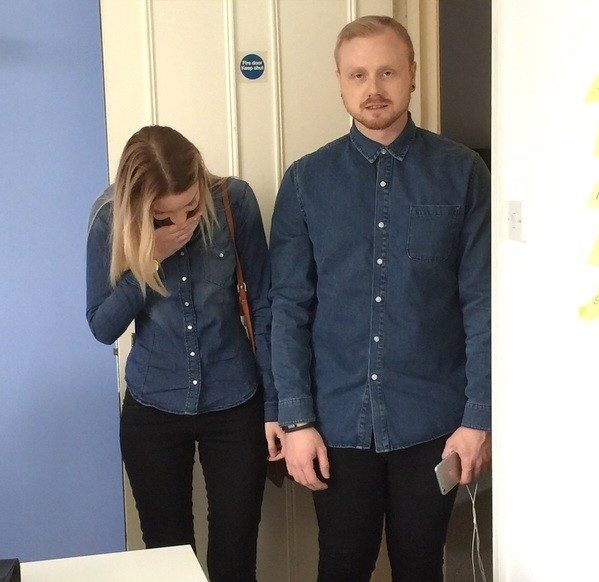 Дедушка и бабушка жены отправили ей это фото несколько месяцев назад. Я понял, что в школе мы одинаково одевались, и у нас были одинаковые причёски. Мы вместе уже 10 лет!
