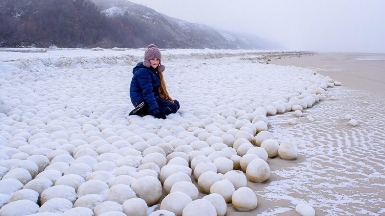 Такое редкое природное явление происходит в местах с суровым климатом. В России ледяные шары обнаружили в Сибири, на побережье Обской губы. Они были идеально круглой формы. Этими шарами было усеяно все побережье. Их диаметр составлял от 10 до 25 сантиметров.