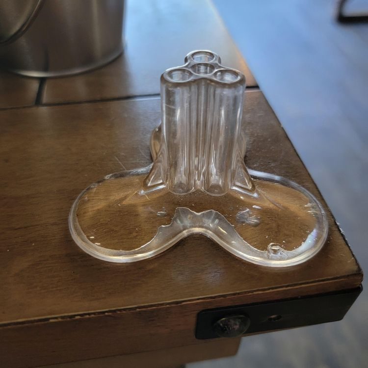 Вопрос: «Штука на липучке на углу стола. Четыре отверстия в верхней части диаметром около 3 мм, прозрачная, липкая гелеобразная субстанция внизу, прикрепляющая ее к столу. Имеет три доли. Никто не удалял эту штуку, потому что она, по-видимому, очень интригующая»