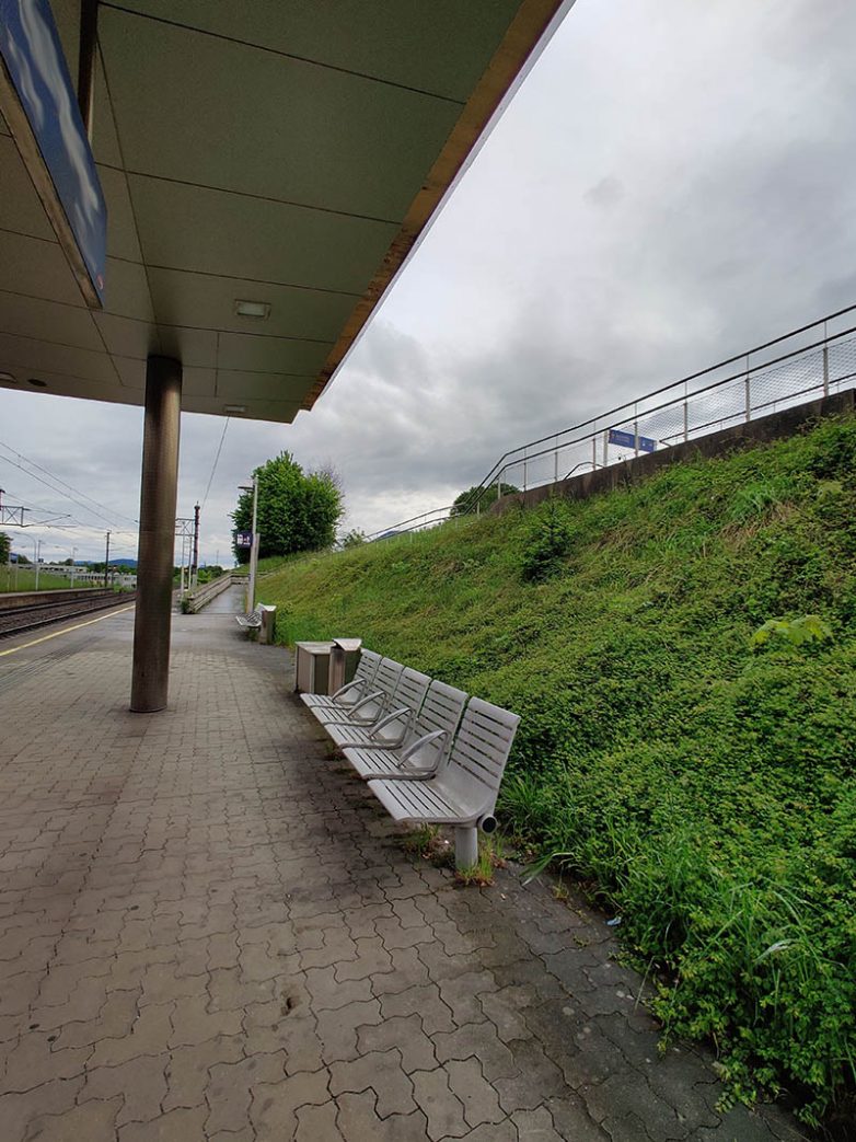 Во время дождя вода с навеса стекает прямо на головы тех, кто сидит на этой скамейке