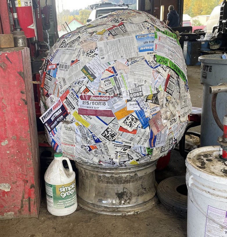 На шиномантаже есть такой шар из этикеток, которые производители клеят на новые шины
