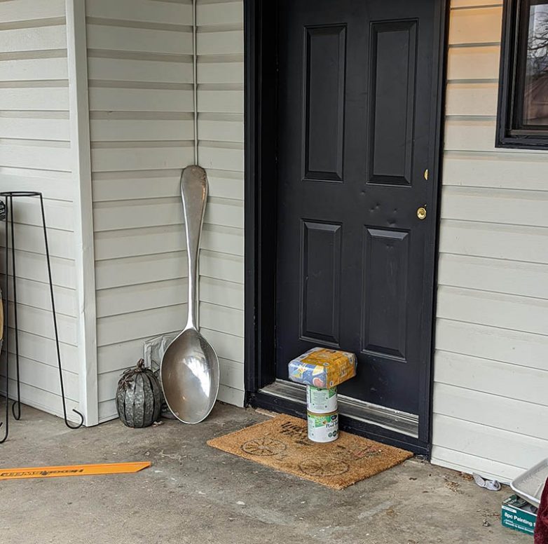 Ложка рядом с дверью. Таким прибором разве что из бассейна суп черпать.
