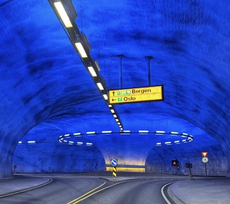 18. Эта кольцевая развязка находится внутри туннеля под горой