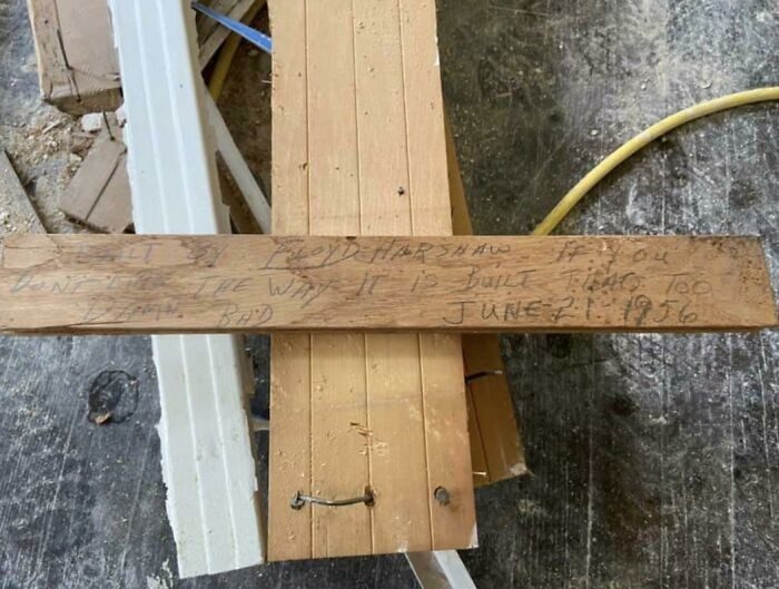 25. На этой половице написано: «Этот дом построил Флойд Хэршоу. Если вам не нравится, как он построен, это ваши проблемы. 21 июня 1956 г.»