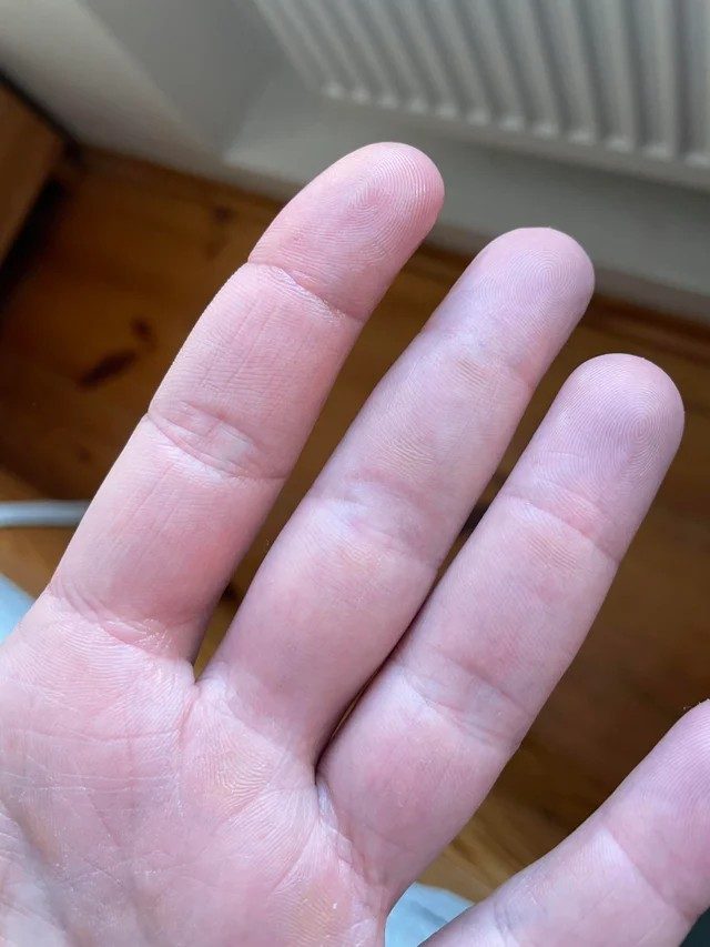 16. Сломанный палец не шевелился в гипсе две недели. Полоска сгиба теперь едва видна.