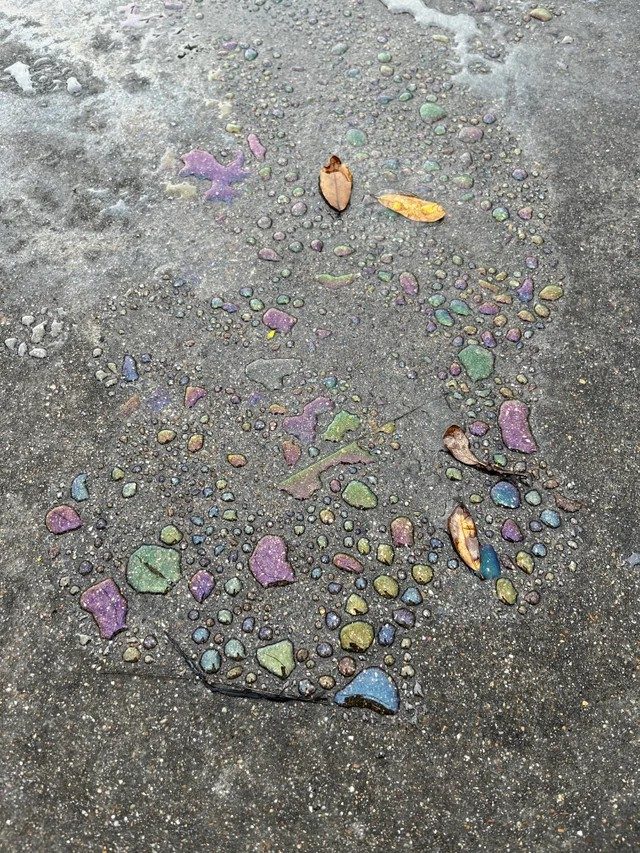 10. После небольшого дождика на месте масляного пятна образовались капли разного цвета