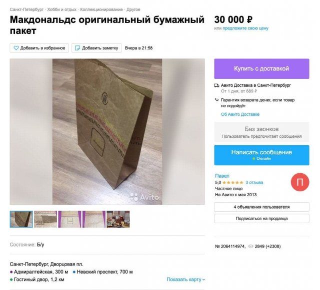 На днях американская компания «Макдональдс» объявила, что на время закроет 850 ресторанов быстрого обслуживания. Правда, зарплату всем сотрудникам сохранят. В Сети уже появились десятки объявлений о продаже гамбургеров, картошки-фри и пакетов. Цены кусаются.