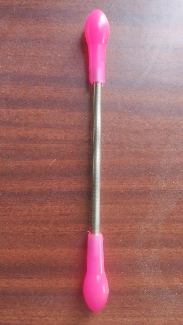 Металлическая пружина с пластиковыми наконечниками длиной 20 см без надписей и маркировки