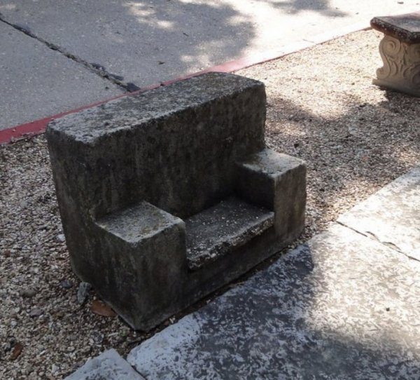 «В одном из городов Арканзаса нашел что-то похожее на очень маленькую бетонную скамейку или сиденье, обращенное в сторону от дороги возле бордюра. Слишком маленькое даже для ребенка, и их несколько по всему городу»