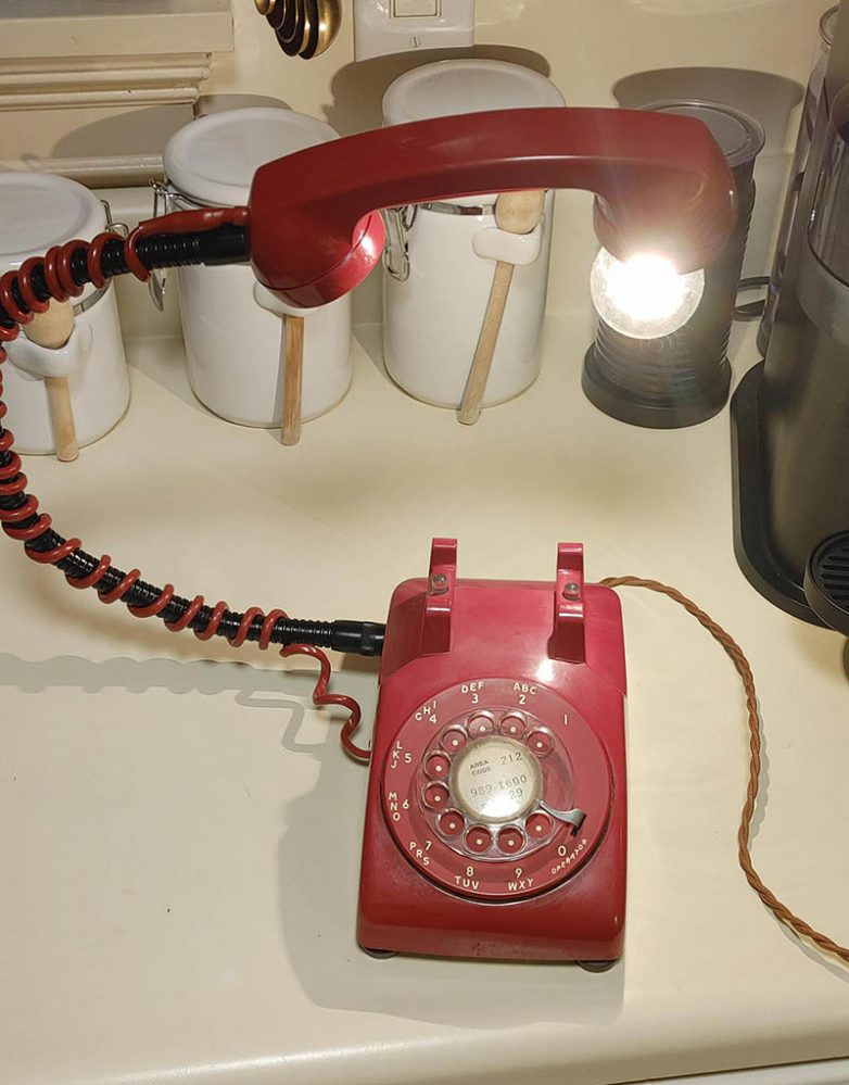 Старый телефон без дела валялся, поэтому его решили переделать в настольную лампу