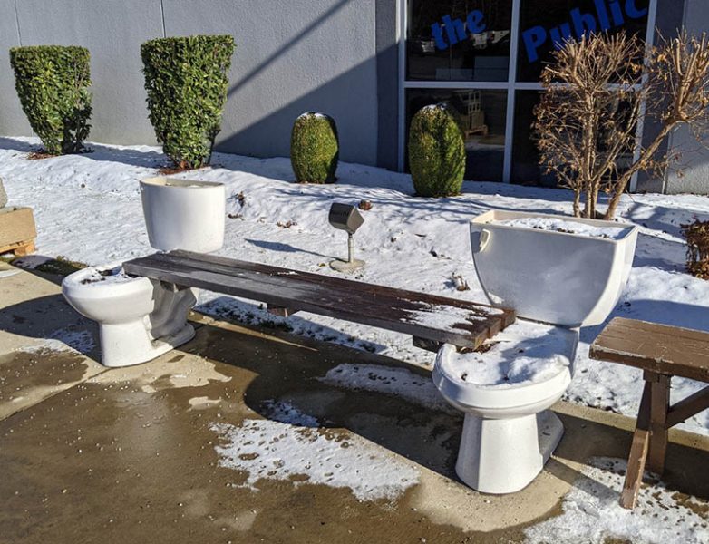 Из двух старых унитазов решили сделать лавочку, ну не простаивать же им в конце концов