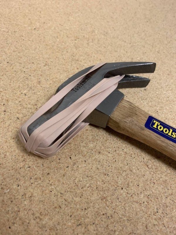 На работе надо было разобрать полку, потребовалась киянка. Молоток + резинка = нужный инструмент