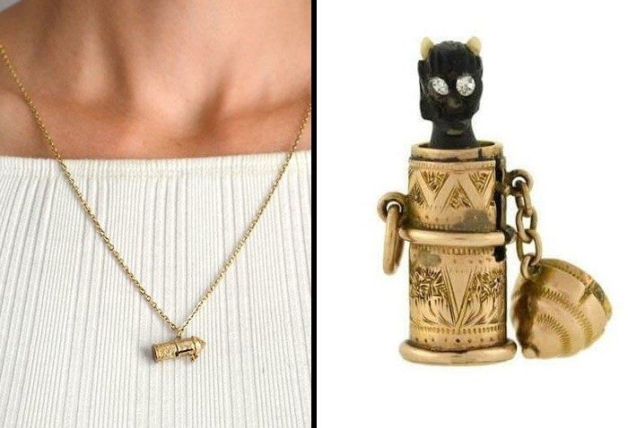 Когда на этом викторианском золотом кулоне открывается крышка, из него выскакивает маленький демон со сверкающими стразами глазами
