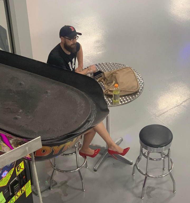 Присел отдохнуть, потому что не так уже и легко перемещаться на таких каблуках