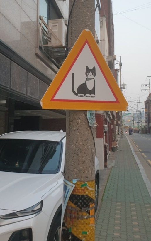 Это не знак кошачьего перехода. Табличка означает, что поблизости находятся кошки