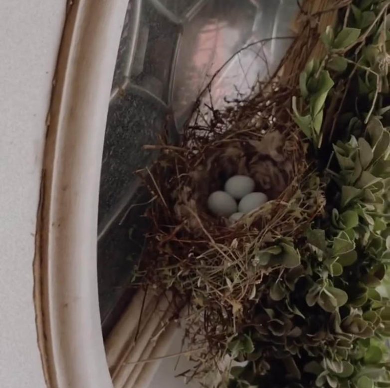 “У меня на входной двери красуется венок и сегодня я заметил, что там какая-то птичка свила свое гнездо и скоро у неё будут птенцы”