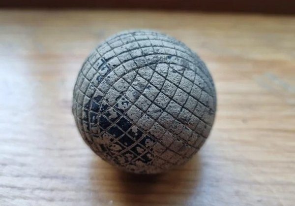 Это старый мячик для гольфа. Они появились раньше резиновых мячей. Вероятно, ему более 100 лет.
