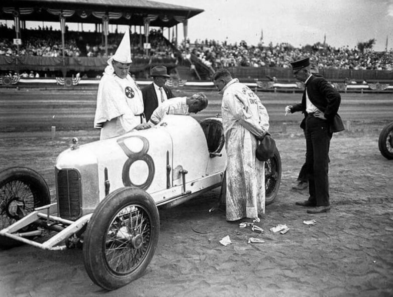 Поломка автомобиля гоночной команды Ку-клукс-клана, Канзас, 1920 год.