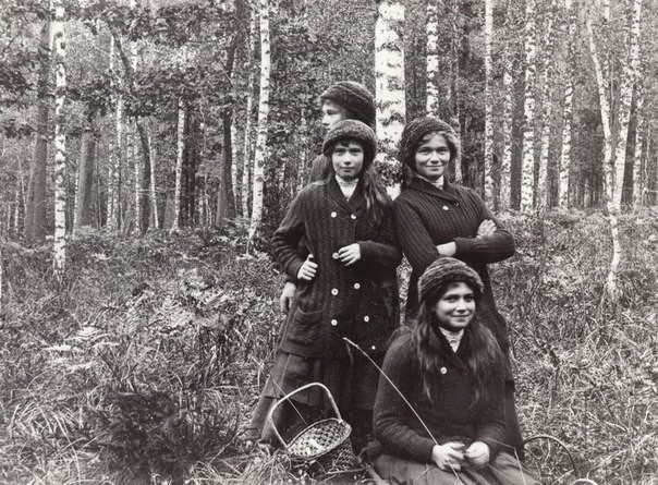 Великие княжны Ольга, Татьяна, Мария и Анастасия. Беловежская пуща, осень 1913 года.