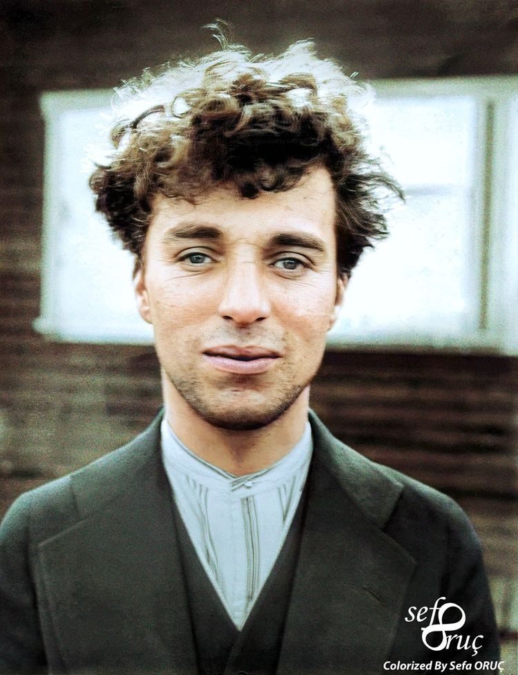 Раскрашенное фото 27-летнего Чарли Чаплина, 1916 год