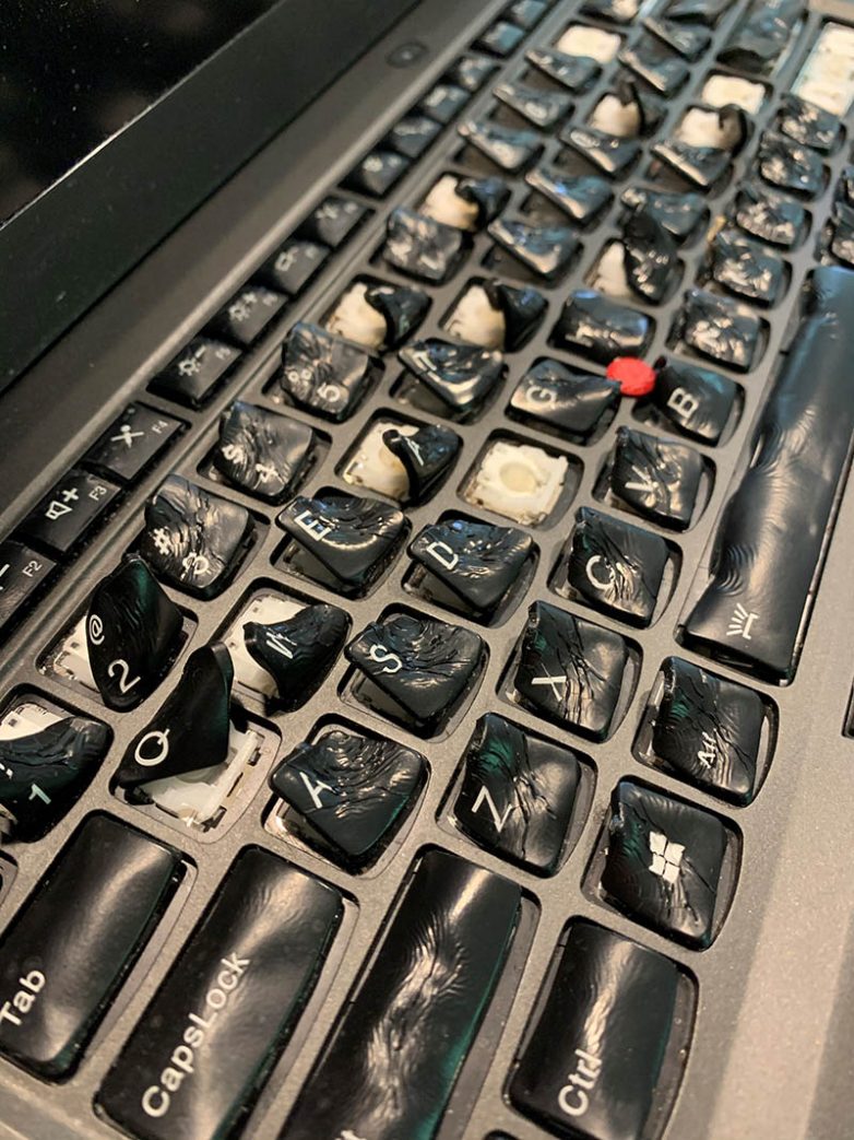 “Принесли клавиатуру с просьбой починить. Это похоже на лак для ногтей.”