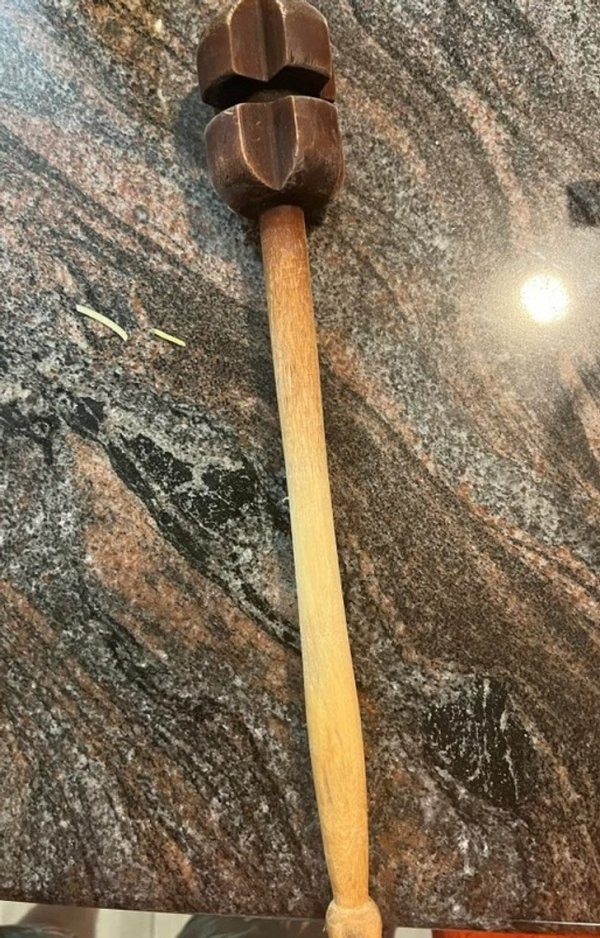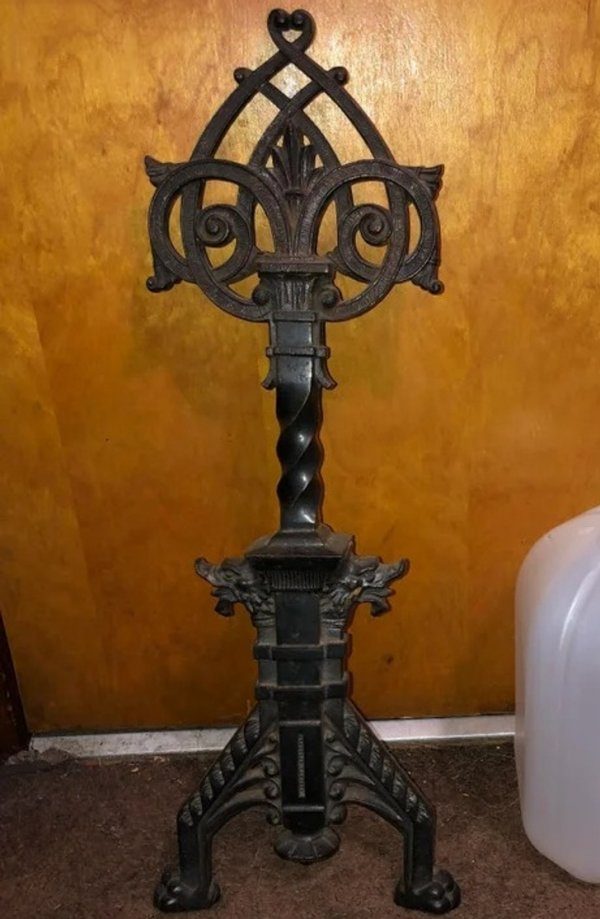 Найден в старом доме. Сделан из металла, с крючком внизу и чем-то вроде вешалки наверху