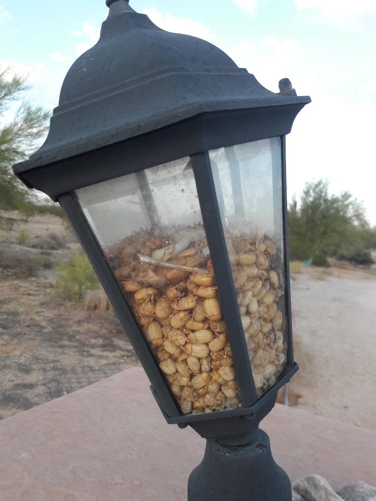 Парень что-то доставлял и увидел этот фонарь, полный жуков